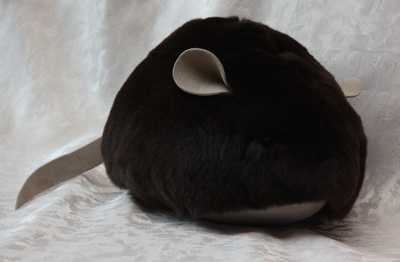 Ein handgenähtes Fellkuscheltier „Maus groß“ aus Rex-Kaninchenfell in der Farbe dunkelbraun