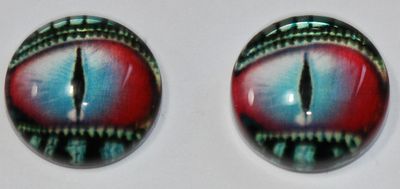 1 Paar Augen Glaslinsen Drache mit Augenlid zum Aufkleben 10 mm blau rot blau