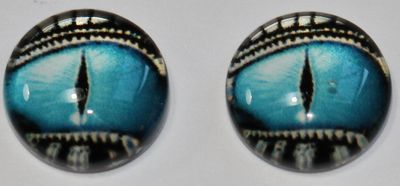 1 Paar Augen Glaslinsen Drache mit Augenlid zum Aufkleben 10 mm blau silber