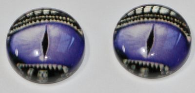1 Paar Augen Glaslinsen Drache mit Augenlid zum Aufkleben 10 mm purple silber