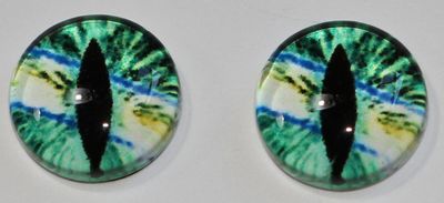 1 Paar Augen Glaslinsen Katze zum Aufkleben 10 mm grün weiß gelb