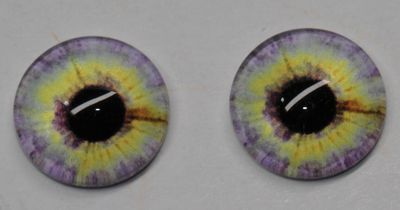 1 Paar Augen Glaslinsen zum Aufkleben 10 mm flieder gelb