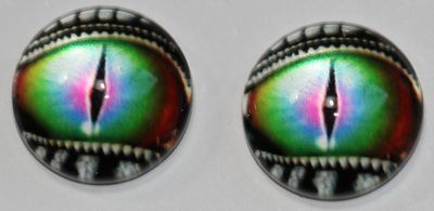 1 Paar Augen Glaslinsen Drache mit Augenlid zum Aufkleben 12 mm bunt silber