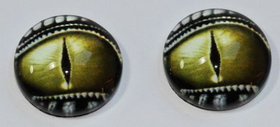 1 Paar Augen Glaslinsen Drache mit Augenlid zum Aufkleben 12 mm grün silber