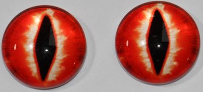 1 Paar Augen Glaslinsen Katze/Drache zum Aufkleben 12 mm orangerot weiß