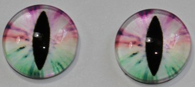1 Paar Augen Glaslinsen Katze zum Aufkleben 12 mm hellgrün weiß rosa