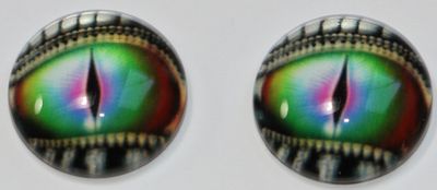 1 Paar Augen Glaslinsen Drache mit Augenlid zum Aufkleben 14 mm bunt silber