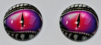 1 Paar Augen Glaslinsen Drache mit Augenlid zum Aufkleben 14 mm pink silber