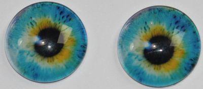 1 Paar Augen Glaslinsen zum Aufkleben 16 mm blau gelb
