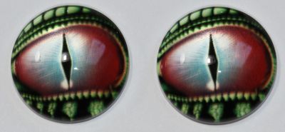 1 Paar Augen Glaslinsen Drache mit Augenlid zum Aufkleben 18 mm rot blau grün