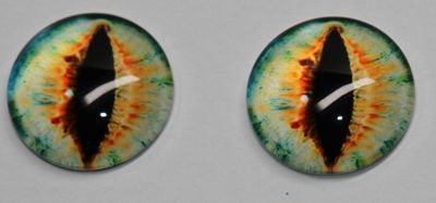1 Paar Augen Glaslinsen Katze/Drache zum Aufkleben 18 mm orange hellgrün