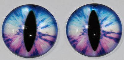 1 Paar Augen Glaslinsen Katze zum Aufkleben 18 mm rosa blau weiß