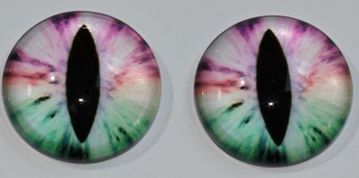 1 Paar Augen Glaslinsen Katze zum Aufkleben 18 mm rosa weiß grün