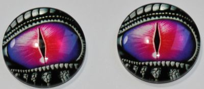 1 Paar Augen Glaslinsen Drache mit Augenlid zum Aufkleben 20 mm pink silber