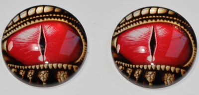 1 Paar Augen Glaslinsen Drache mit Augenlid zum Aufkleben 20 mm rot bronze