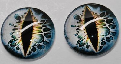 1 Paar Augen Glaslinsen Katze/Drache zum Aufkleben 25 mm blau hellblau
