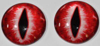 1 Paar Augen Glaslinsen Katze/Drache zum Aufkleben 25 mm rot weiß