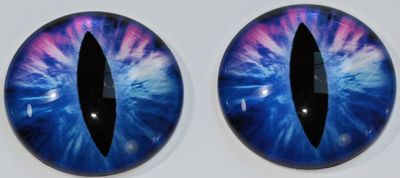1 Paar Augen Glaslinsen Katze zum Aufkleben 25 mm blau pink
