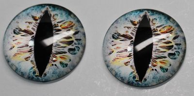 1 Paar Augen Glaslinsen Katze/Drache zum Aufkleben 30 mm blau pastell