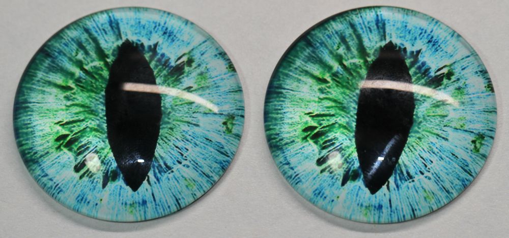 1 Paar Augen Glaslinsen Drache zum Aufkleben 40 mm blau grün