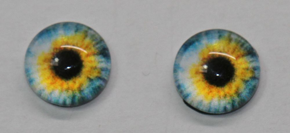 1 Paar Augen Glaslinsen zum Aufkleben 8 mm hellblau gelb weiß