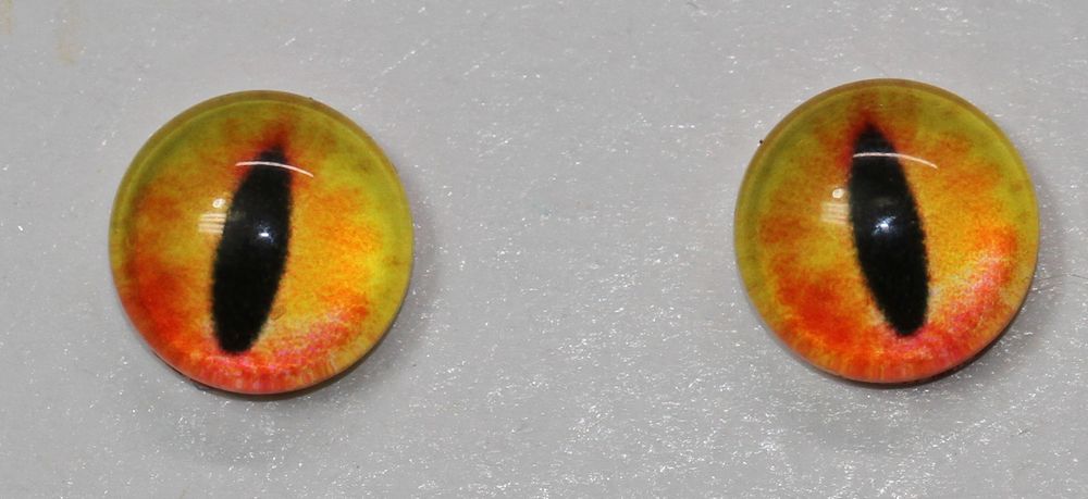 1 Paar Augen Glaslinsen zum Aufkleben Katze / Drache 8 mm orange gelb