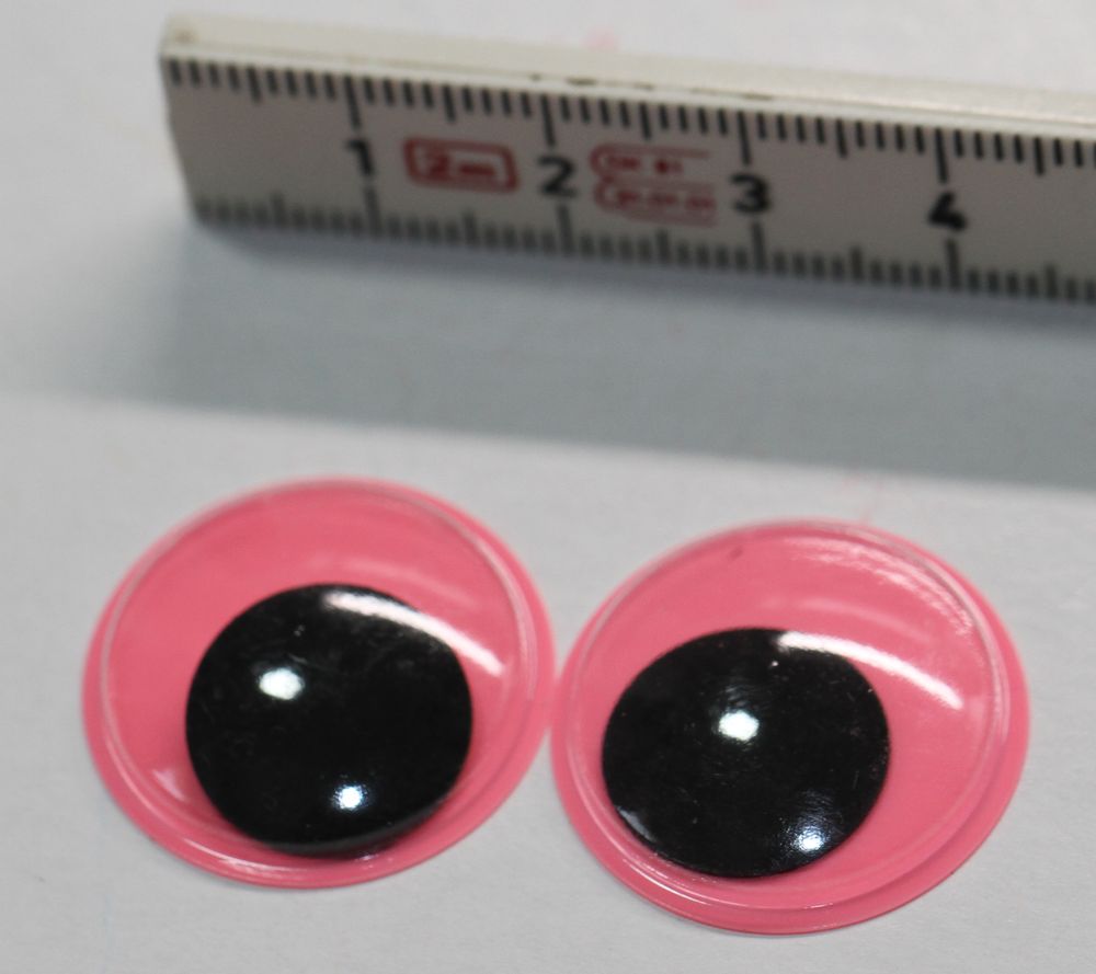 1 Paar Augen (2 Stück) Wackelaugen rund rosa schwarze Pupille 24 mm