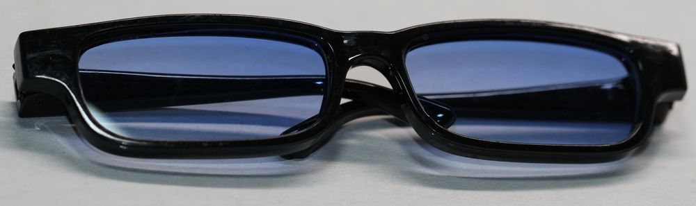 Brille 9 cm Kunststoff schwarz Gläser Farbverlauf blau für Teddies oder Puppen Accessoire Requisite