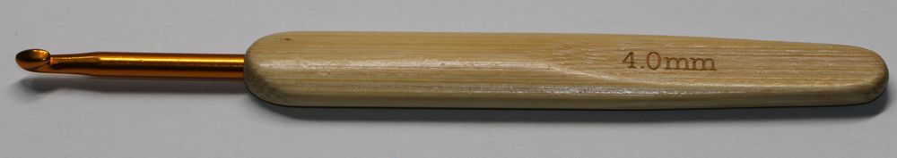 1 Häkelnadel 4 mm Metall mit Holzgriff Bambus Farbe hellbraun