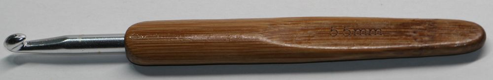 1 Häkelnadel 5,5 mm Metall mit Holzgriff Bambus Farbe dunkelbraun