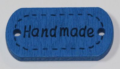 1 Button aus Holz "handmade" blau rechteckig abgerundet