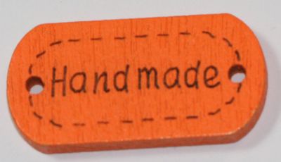 1 Button aus Holz "handmade" orange rechteckig abgerundet