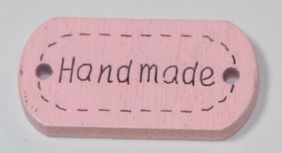1 Button aus Holz "handmade" rosa rechteckig abgerundet