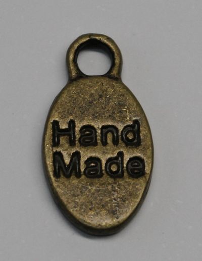 1 Button aus Metall "handmade" bronzefarben ca. 15 mm x 8 mm zum Annähen