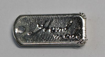 1 Button aus Metall "handmade" silberfarben ca. 12 mm x 6 mm zum Annähen