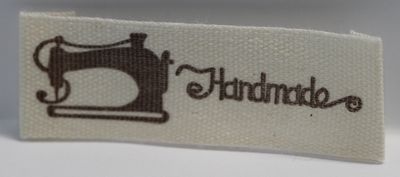 1 Etikett natur zum Einnähen / Annähen textil ca. 4,5 cm x 1,5 cm "Handmade" bedruckt
