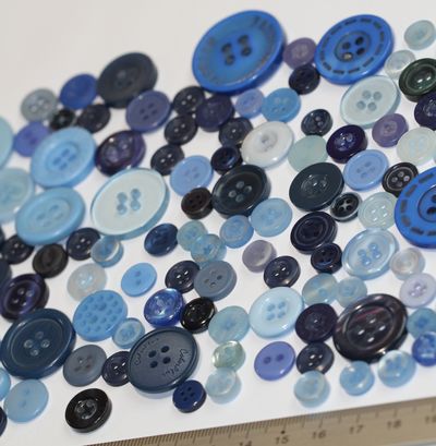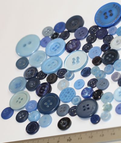 ca. 50 g Knöpfe aus Kunststoff Blautöne Mix verschiedene Größen und Formen