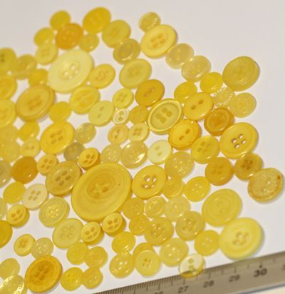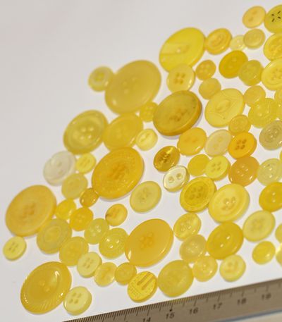 ca. 50 g Knöpfe aus Kunststoff gelb Mix verschiedene Größen und Formen