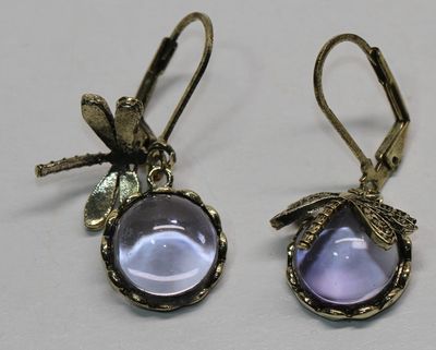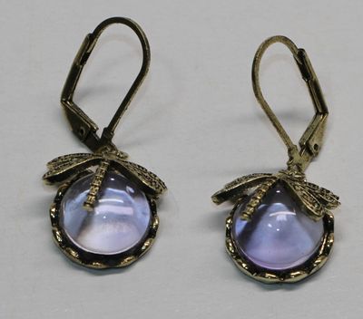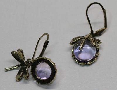 Mobile Preview: Ohrhänger antikgoldfarben mit fliederfarbenem Stein mit Libelle