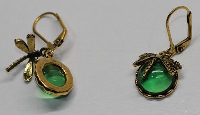 Ohrhänger goldfarben mit grünem Stein mit Libelle
