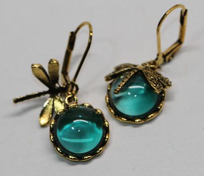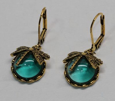 Ohrhänger goldfarben mit türkisgrünem Stein mit Libelle