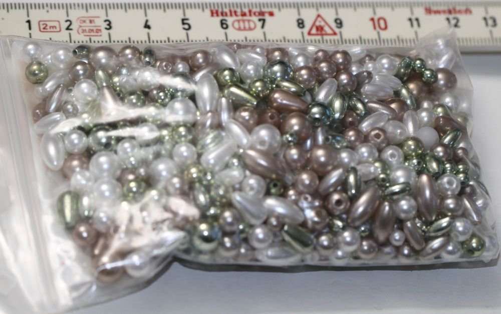 Sonderangebot Perlenmischung Pastelltöne grün-weiß metallic Restposten