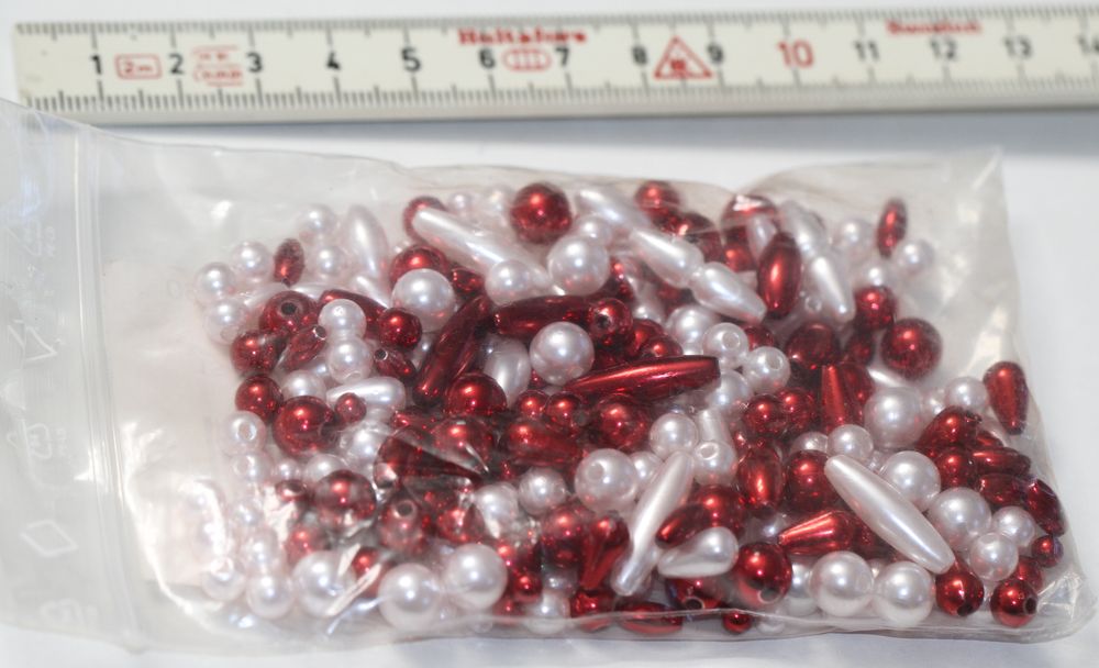 Sonderangebot Wachsperlenmischung rot-weiß metallic - Restposten