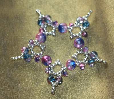 Toller Perlenstern aus silbernen Kunststoffperlen, zweifarbigen Glascrashperlen und Draht!