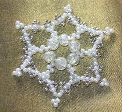 Toller Perlenstern aus silbernen Kunststoffperlen, weißen Glascrashperlen, weißen Wachsperlen und Draht!