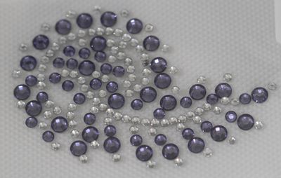 Die Applikation ist ca. 6,1 cm mal 4,2 cm groß und in den Farben Crystal und Tanzanite
