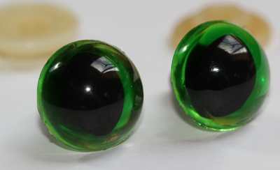 Bitte beachten Sie, dass die transparent hintermalten Farben nur mit einem weißen Hintergrund (Stoff, Plüsch, Fell oder ähnlichem) zur Geltung kommen! Mit einem dunklen Hintergrund erscheinen diese Augen extrem dunkel, da die Farbe des Hintergrundes durch die Augenfarbe zu sehen ist. Kunststoffaugen haben einen anderen Brechungsgrad als Glasaugen und sind daher nicht miteinander vergleichbar. Glasaugen, wie sie z. B. bei alten Teddybären verwendet wurden, schimmern auch dann schön hell, wenn der Stoffhintergrund dunkel ist, da Glas sich hier sehr anders verhält.