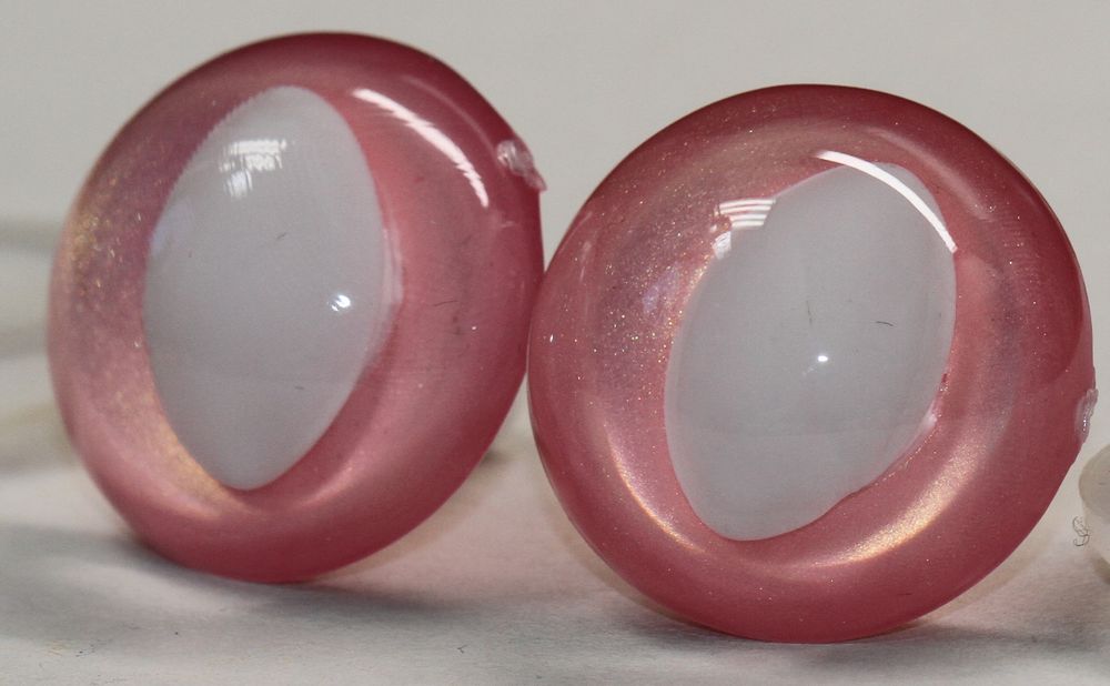 Bestandteil des Kaufs ist auch je Auge eine Folie mit Glitter, welche optional hinten auf das Auge gesteckt werden kann (nur vor der Montage!) Die Folie wird dann durch die speziellen Halterungen von hinten beim Montieren mit dem Auge umschlossen, wenn diese eingerastet sind und lässt sich dann nicht mehr entfernen.