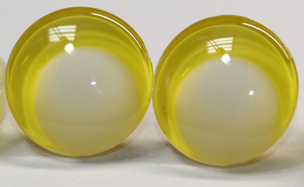 Preview: 1 Paar Sicherheitsaugen Schielaugen trapezoid 25 mm gelb nachtleuchtende Pupille