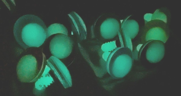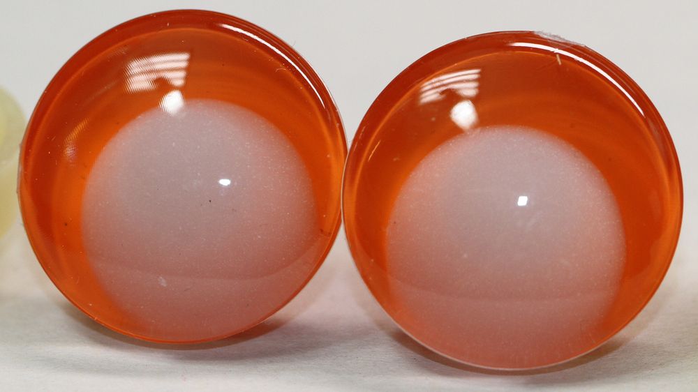 Preview: 1 Paar Sicherheitsaugen Schielaugen trapezoid 25 mm orange nachtleuchtende Pupille